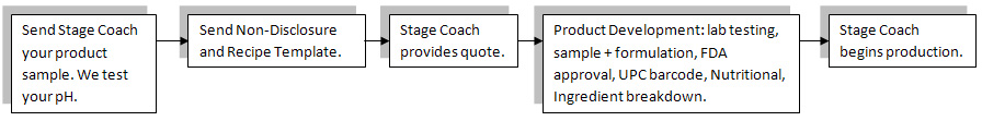 Contract Bottling – When the client has a recipe/product and would like to have it manufactured by Stage Coach. Stage Coach will match the client’s recipe and manufacture it in large-scale production.